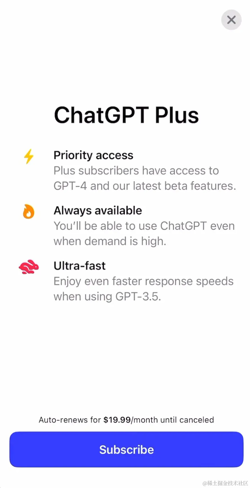 ChatGPT Plus是一种付费订阅,它有以下权限: