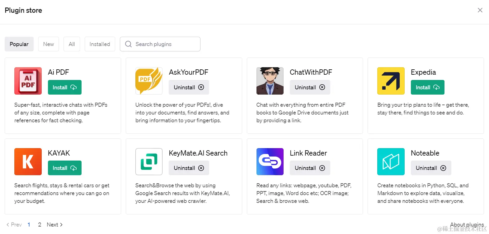 - 插件是由第三方应用程序提供支持,它们不受OpenAI控制,安装前确保你信任该插件