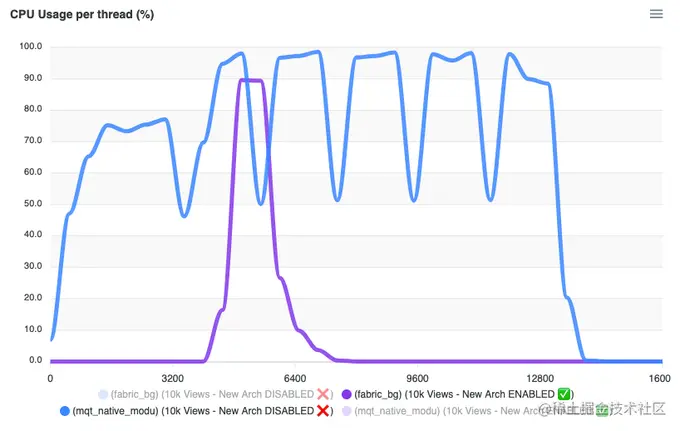 在这种情况下,旧架构速度更快,因为 UI 线程消耗更多。
