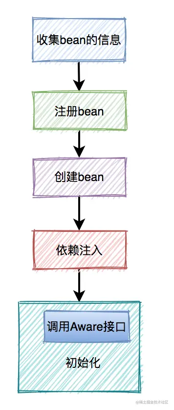 BeanFactoryAware接口是在bean创建成功,并且完成依赖注入之后,在真正初始化之前才被调用的。在这个时候去注册bean意义不大,因为这个接口是给我们获取bean的,并不建议去注册bean,会引发很多问题。