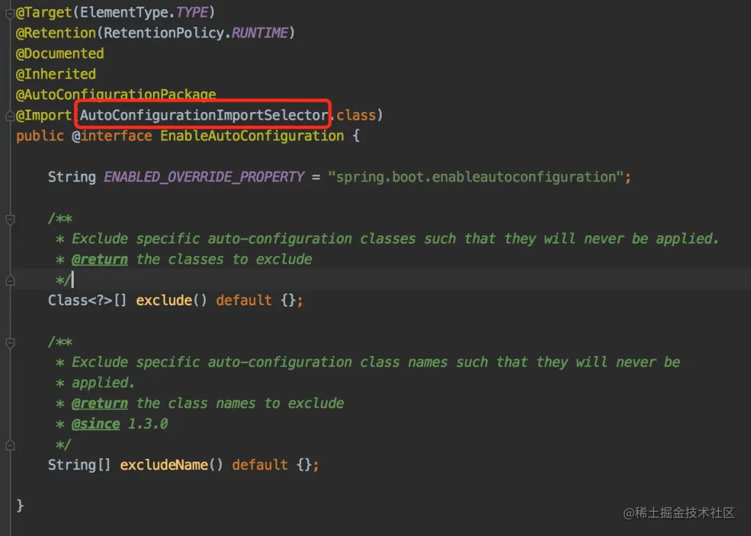 @EnableAutoConfiguration注解中导入了AutoConfigurationImportSelector类,并且里面包含系统参数名称:spring.boot.enableautoconfiguration。
