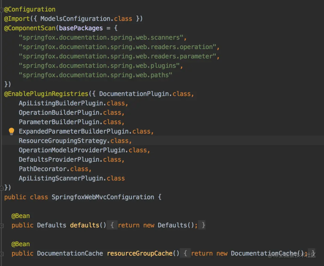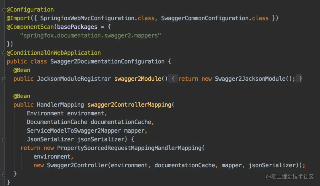 其中@EnableSwagger2注解中导入了Swagger2DocumentationConfiguration类。