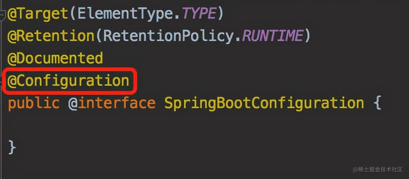 而@SpringBootConfiguration注解,上面又加了@Configuration注解