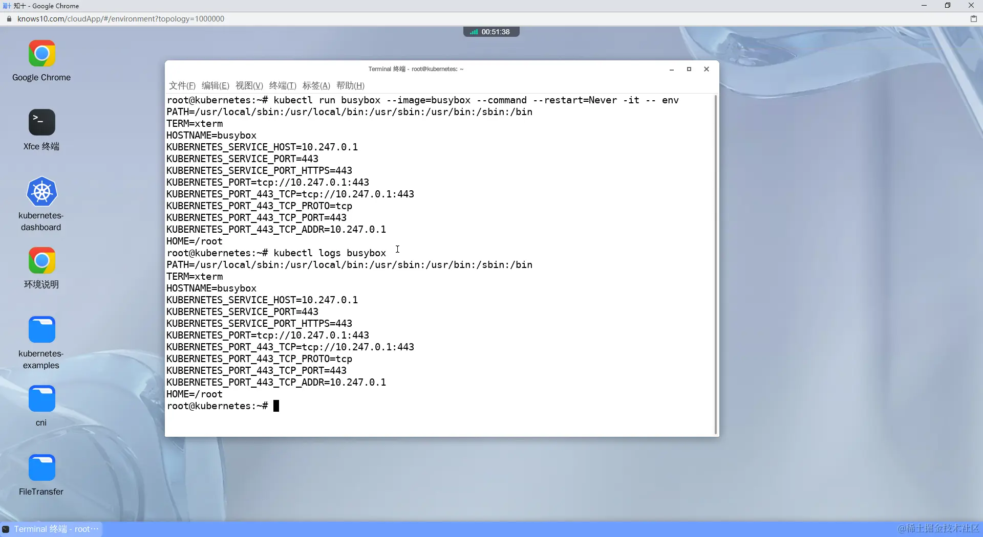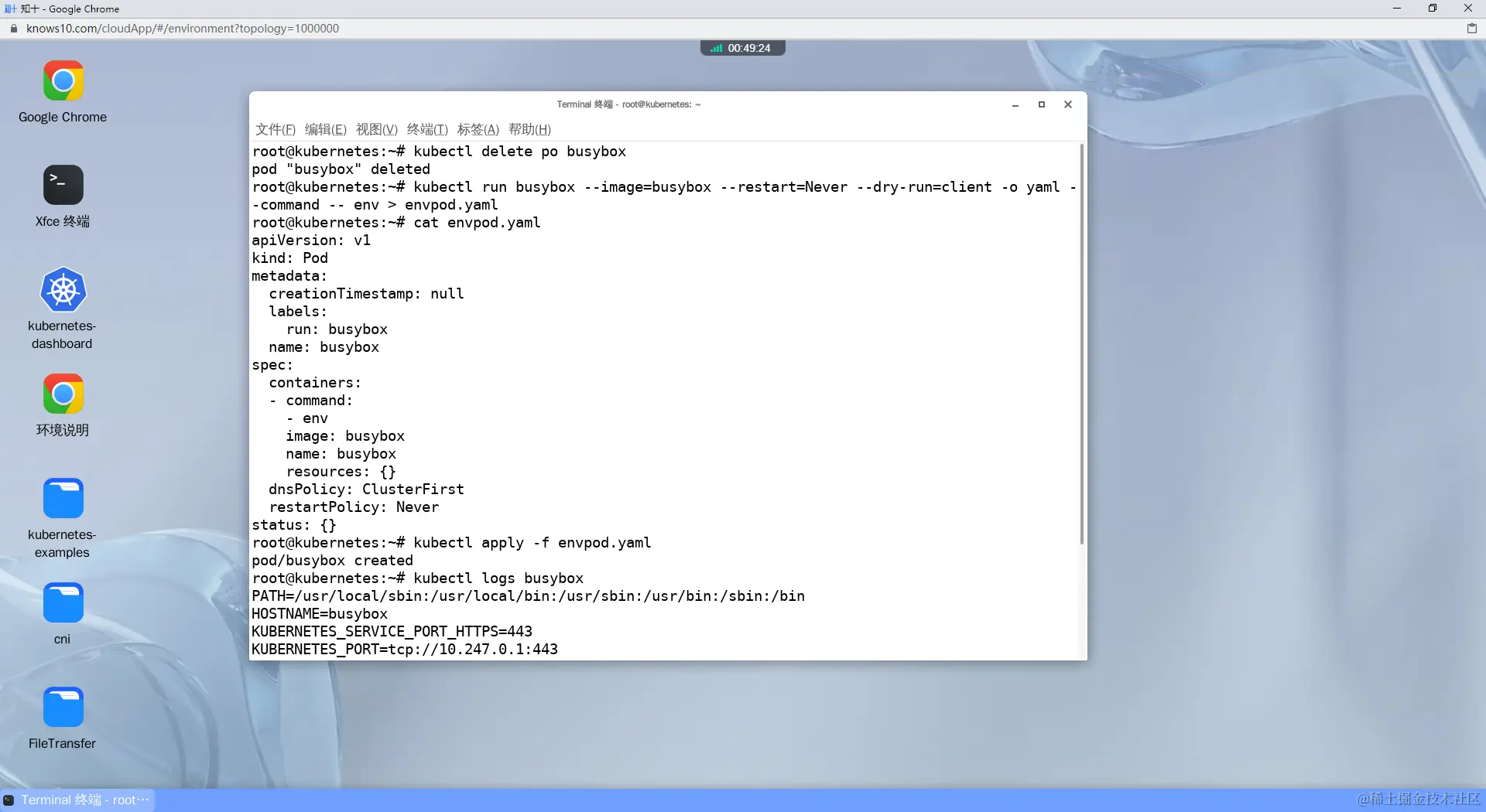 译:创建一个busybox的pod(使用kubectl命令),运行命令“env”。运行它并查看输出