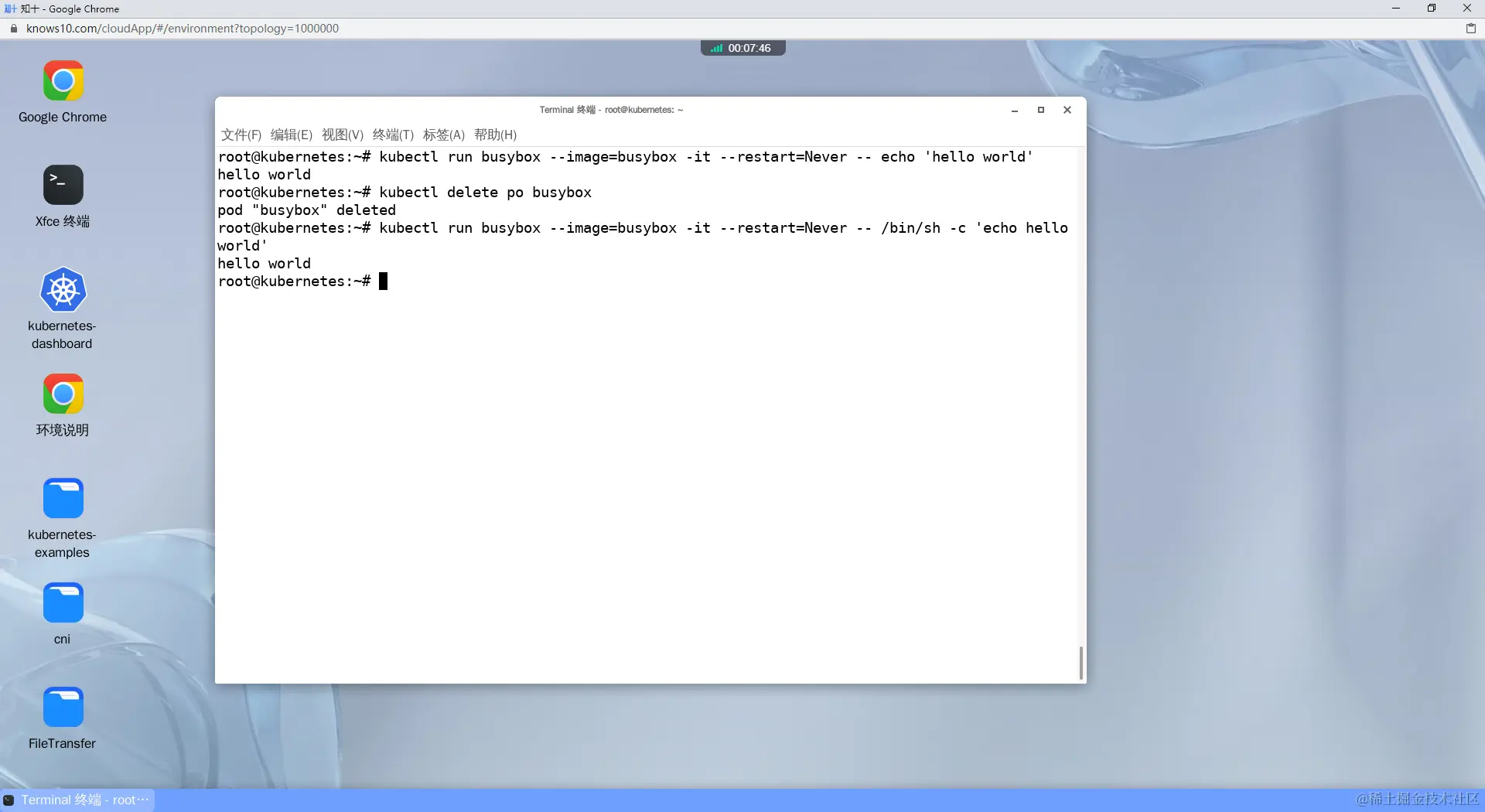 译:创建一个busybox pod,回显'hello world',然后退出