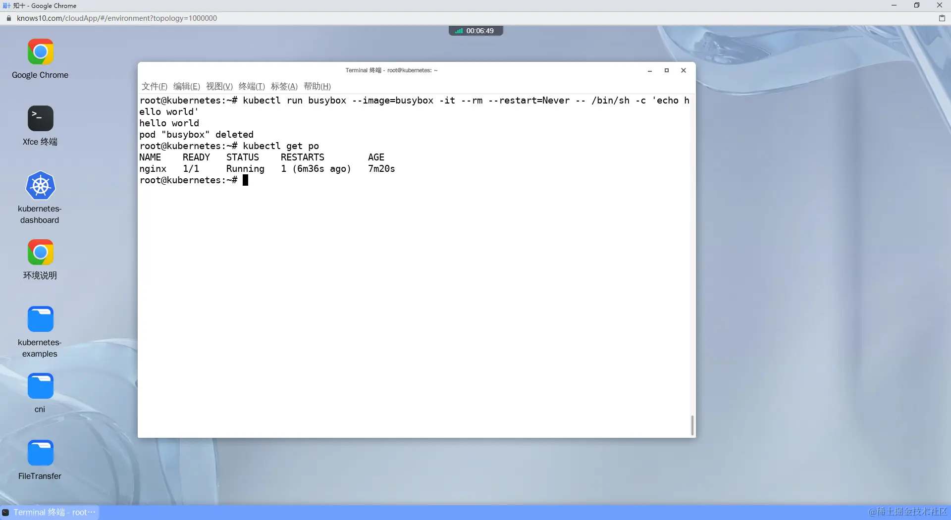 注意:做此步骤时需要将之前产生的pod删除,否则会冲突kubectl delete po busybox