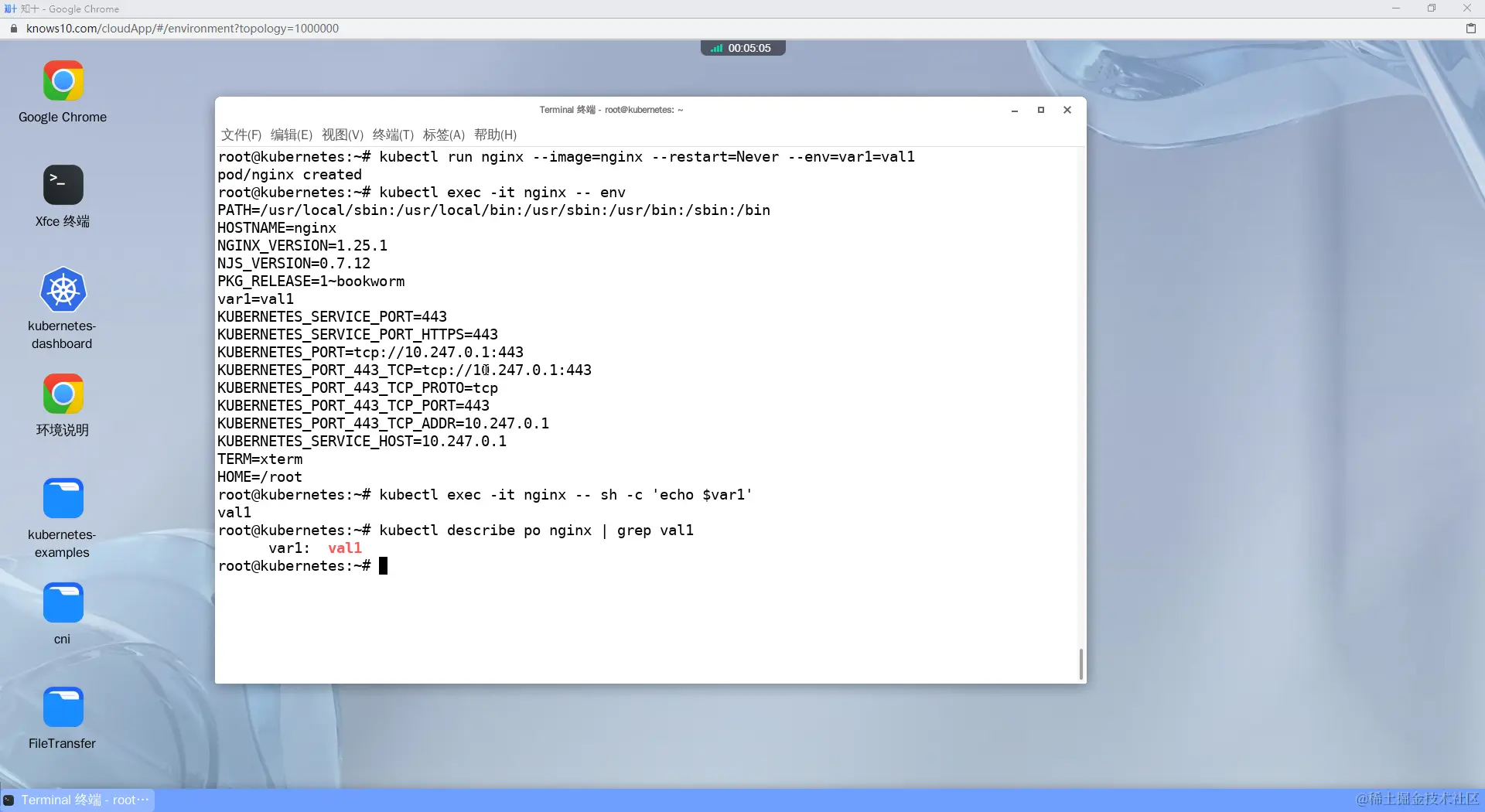 译:创建一个nginx pod,并设置一个env值为'var1= val1'。检查Pod中是否存在env值