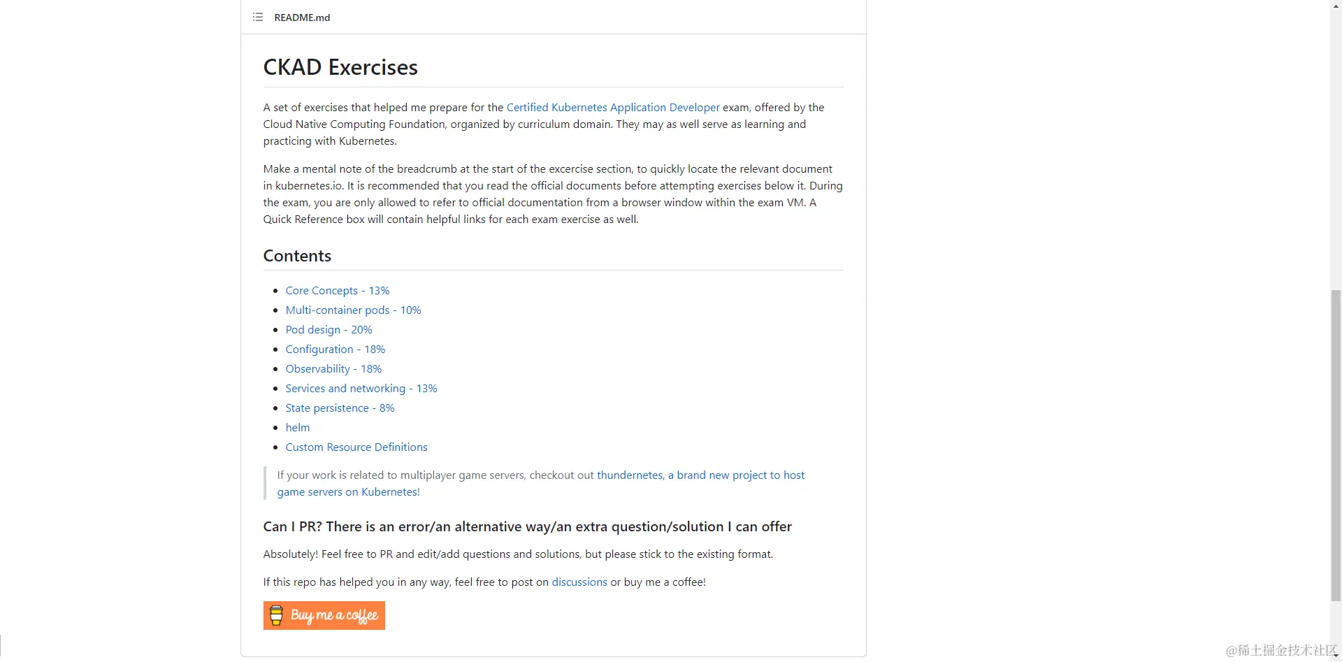 它提供了一系列针对CKAD考试的练习题和解答,涵盖了考试范围内的所有主题,并且针对性的对主题做出了细化,如下: