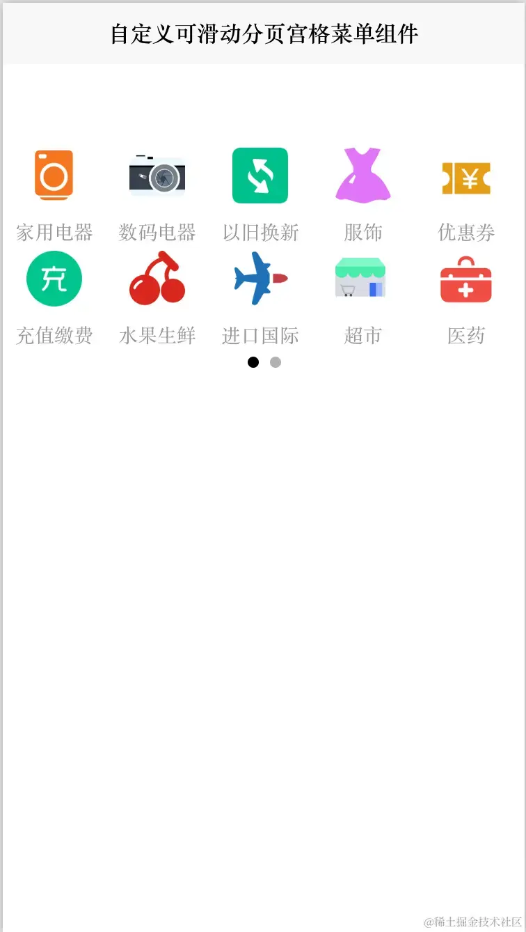 本文将介绍一款我们团队开发的组件:仿支付宝自定义可滑动轮播分页宫格菜单组件。该组件支持九宫格、十二宫格、十五宫格,