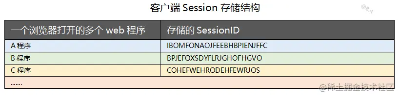 而web服务器会检查是否有SessionID过来,没有则创建SessionID,并根据web程序自身定义在请求哪个资源时添加属于当前会话的信息(也可为空),这个信息列表以SessionID作为标识。然后将SessionID返回给客户端(通过响应报文头的Set-Cookie头域)。
