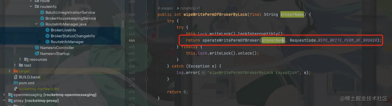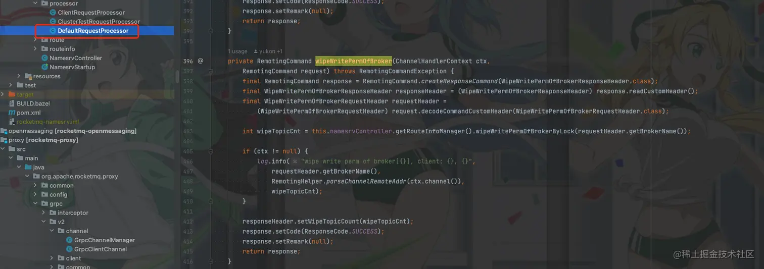 客户端的代码我们没什么好看的,我们还是通过请求状态码RequestCode.WIPE_WRITE_PERM_OF_BROKER查看实际的Nameserver的处理逻辑
