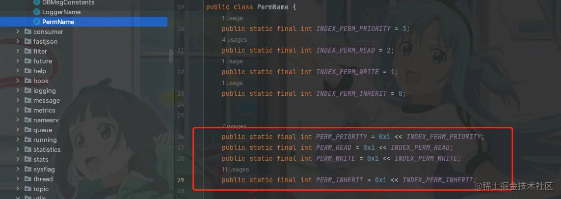 我们先看看perm &= ~PermName.PERM_WRITE;