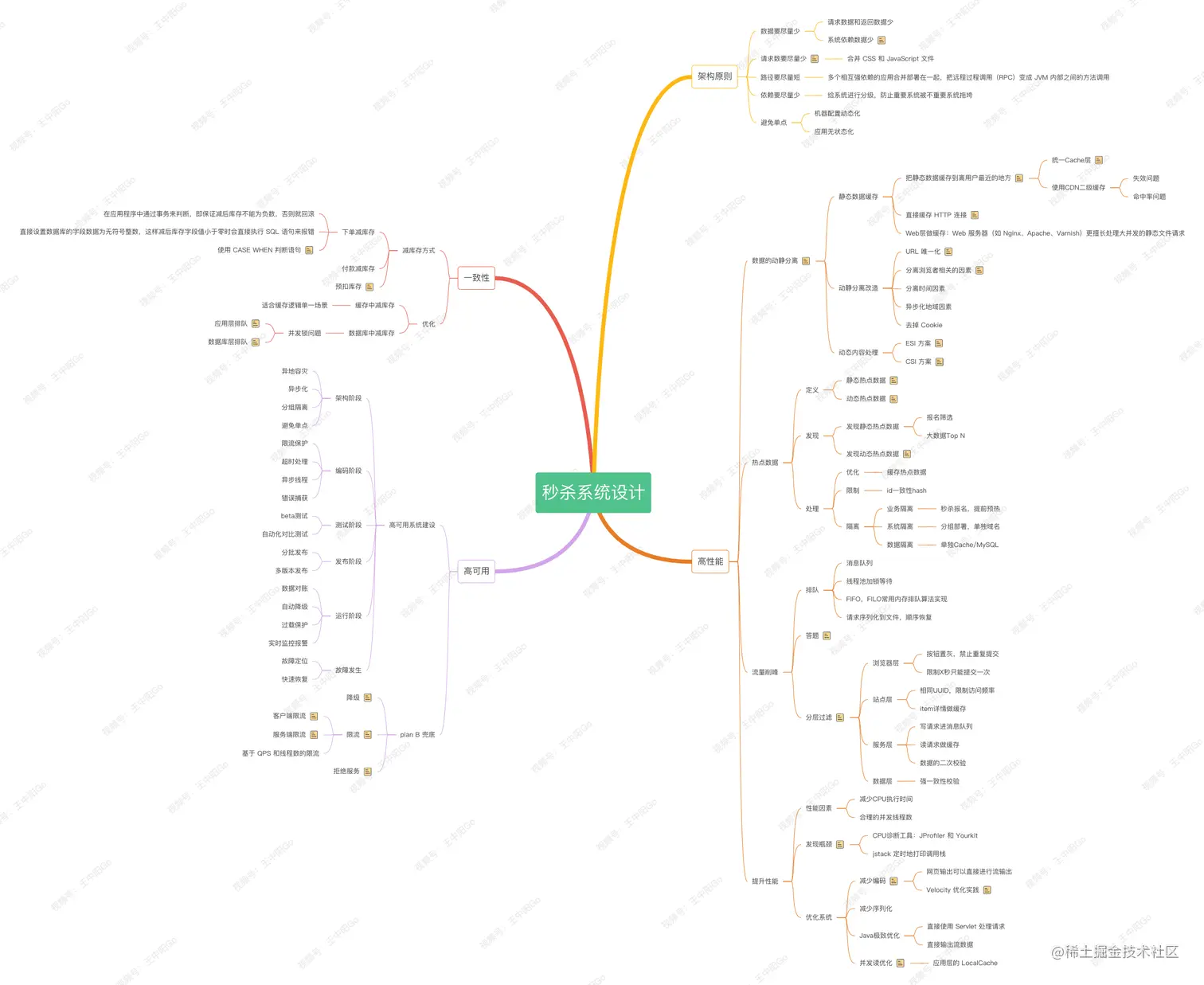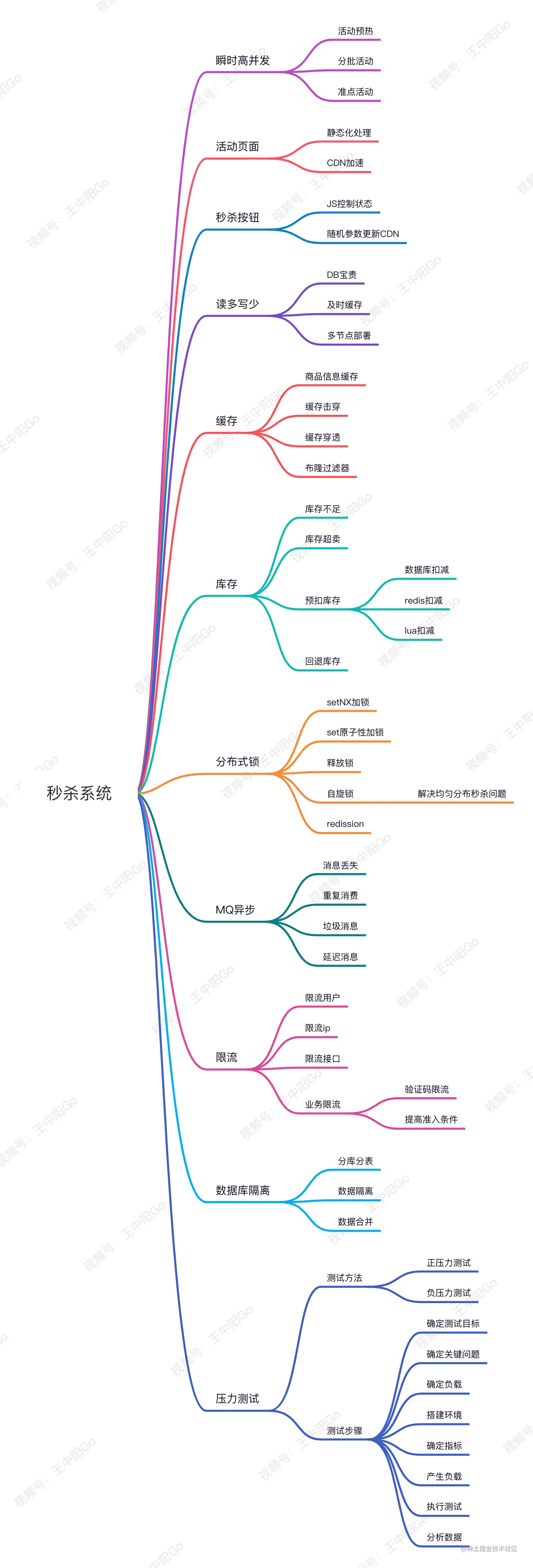 总体来说,秒杀系统是十分复杂的,我们要根据自身的情况,选择合适的架构。这篇文章比较系统的介绍了秒杀场景中常见的问题和解决方案。咱们再回顾一下开篇的思维导图: