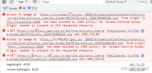 对象存储的域名和你网址的域名不一样,此时用Canvas相关插件 将DOM元素转化为PDF,就会出现跨域错误。