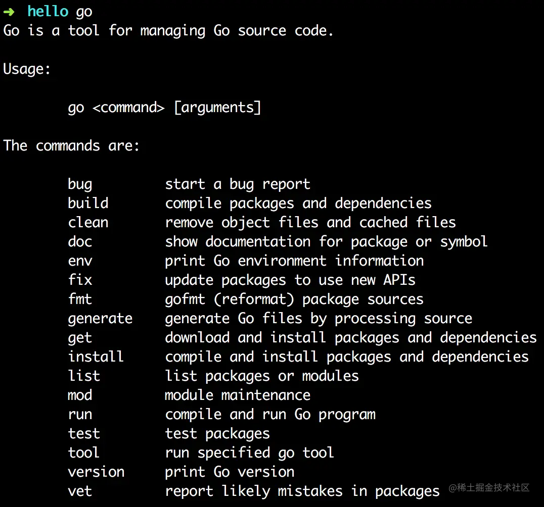 - 在src目录或hello目录下执行 go run hello,不生成任何文件只运行程序。