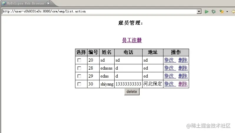 选择 | 编号 | 姓名 | 电话 | 地址 | 操作 |
