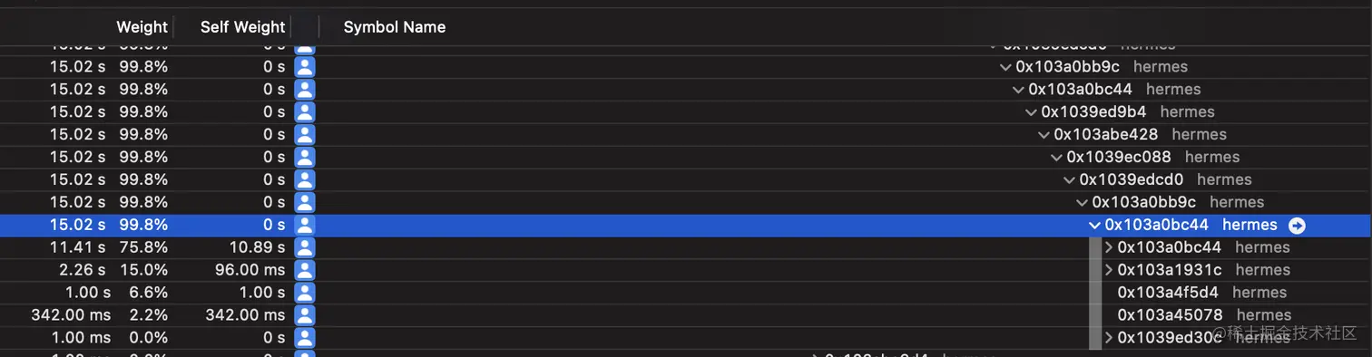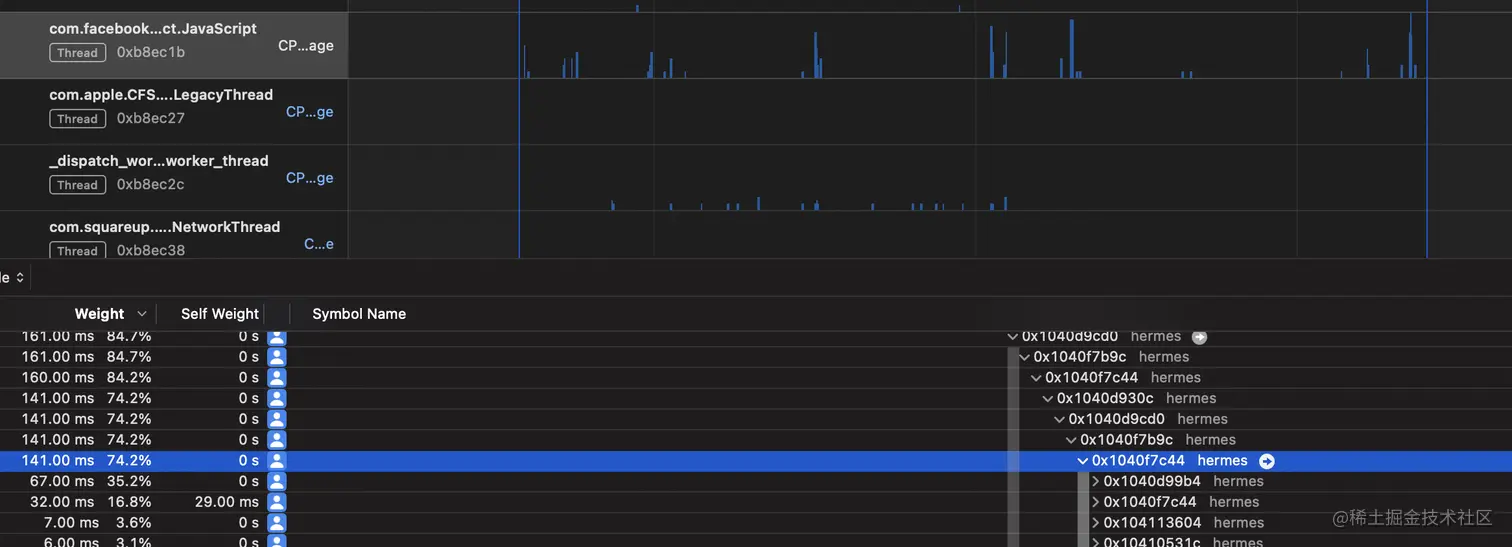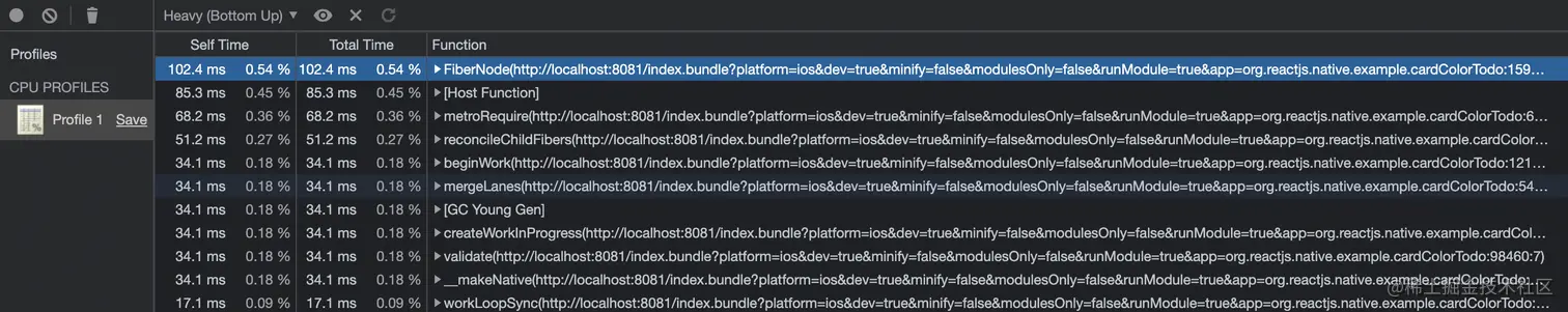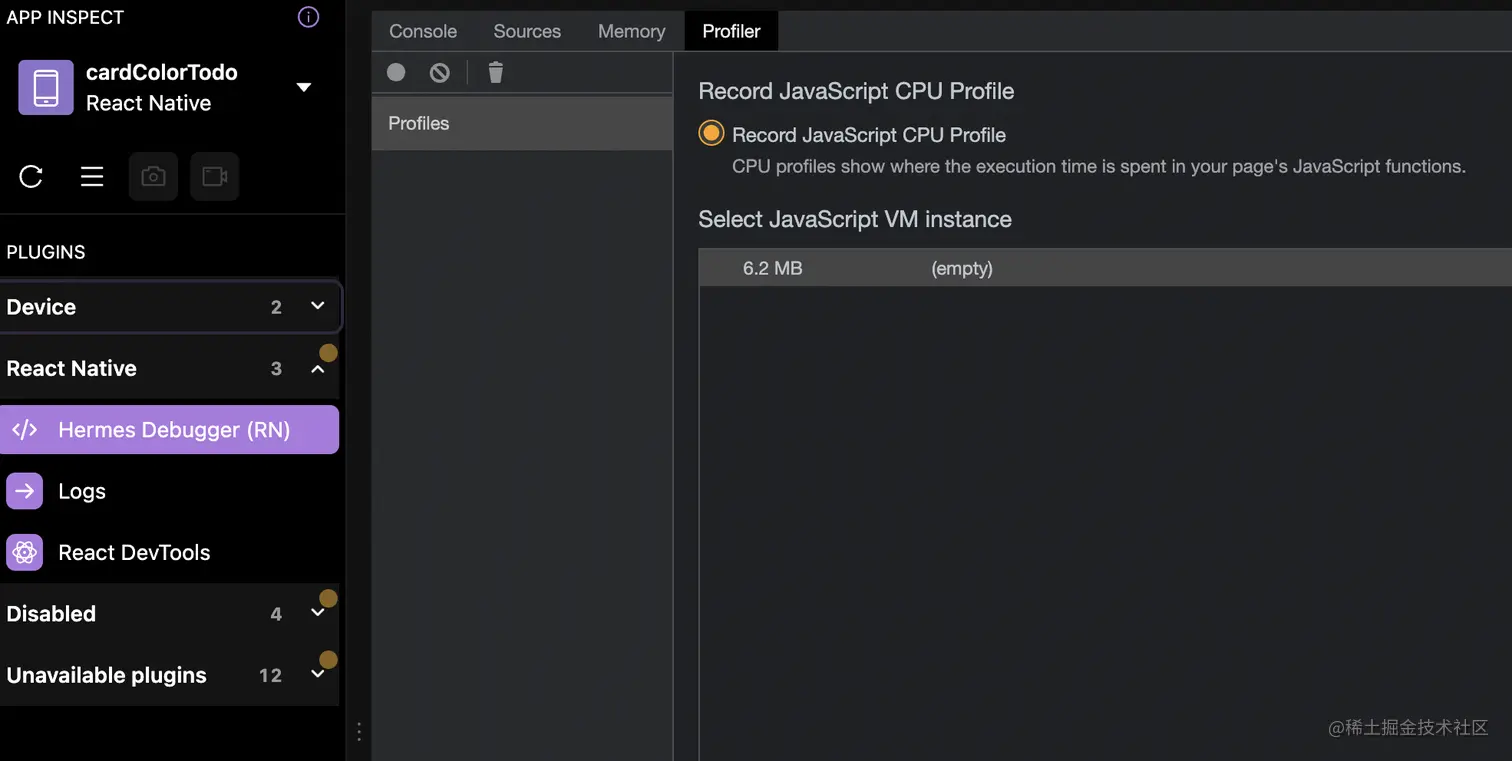 使用 Hermes Debugger (RN) -> Profiler 再对应用程序进行一次剖析。