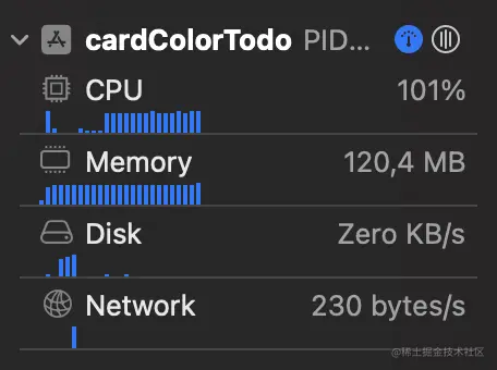 CPU 监视器可测量已完成的工作量。内存监控器用于观察应用程序的使用情况。所有 iOS 设备都使用固态硬盘作为永久存储,与 RAM 相比,访问这些数据的速度较慢。磁盘监控器用于了解应用程序的磁盘写入性能。网络监控器可分析 iOS 应用程序的 TCP/IP 和 UDP/IP 连接。你可以点击每个连接来查找更多信息。