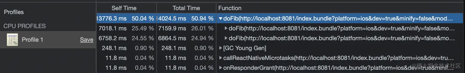 我们看不到 doFib 函数了,只有其他预期的 RN 任务。