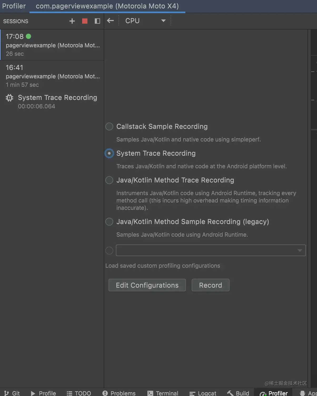 使用 Android Studio CPU Profiler 进行系统跟踪