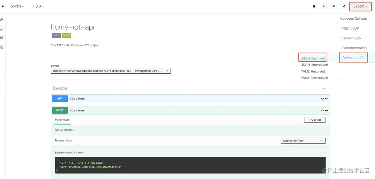 那要怎么导出 Swagger 的数据呢?其实很简单,Swagger 自带了导出功能,能导出一个项目的 JSON 格式文件~