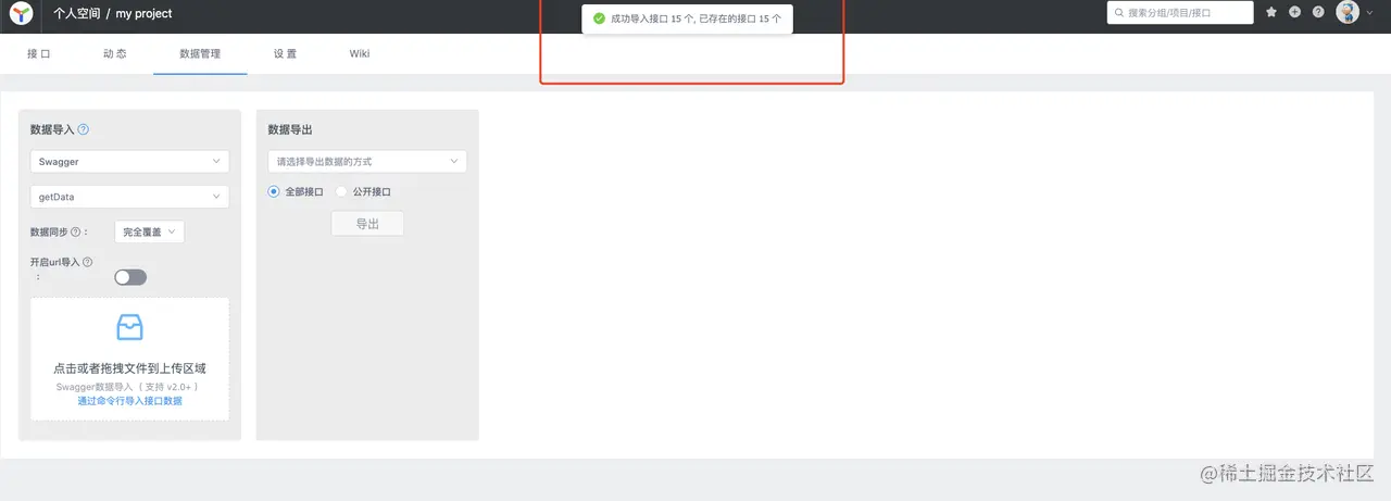 刚刚我们已经导出了 Swagger 的 JSON 文件了,我们现在需要把这个文件导入到 YApi 中,这样才能实现项目迁移