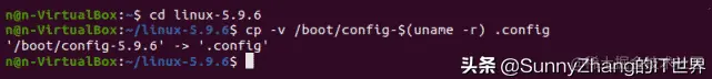 - 从当前机器的启动目录拷贝配置信息到源代码目录。这步操作的意思是我们编译内核的配置采用用当前环境一致的配置。