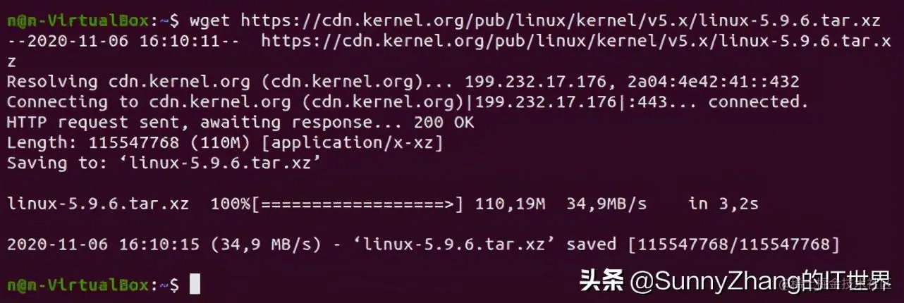 - 假设我们现在在一个Linux操作系统中,在命令行输入如下命令就可以下载内核了。