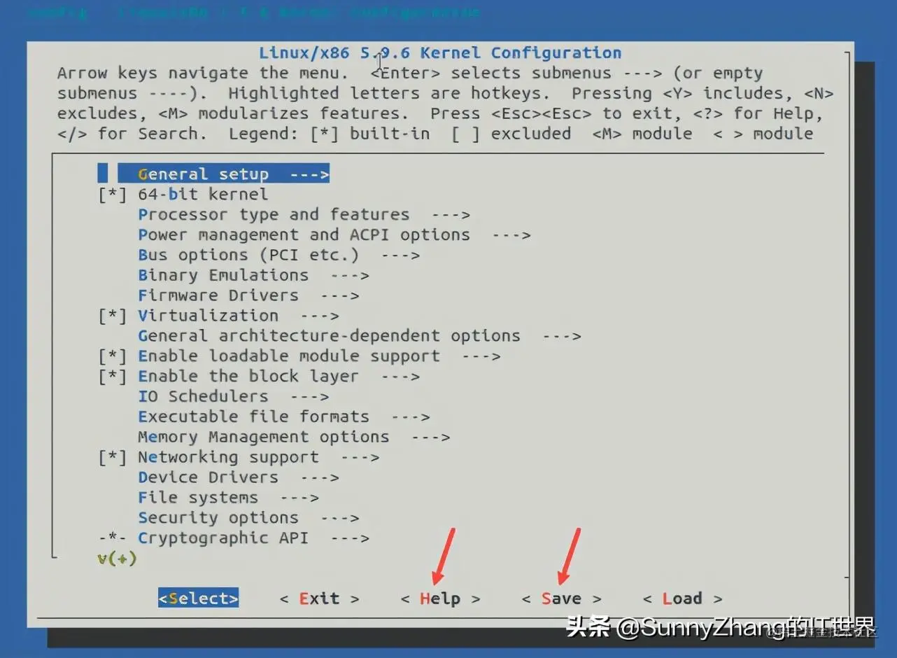 - 下面是打开的配置界面。可以看出里面包含所有的内核组件,包括文件系统,网络,IO栈,虚拟化和设备驱动等等。如果你不熟悉,可以不做任何修改。