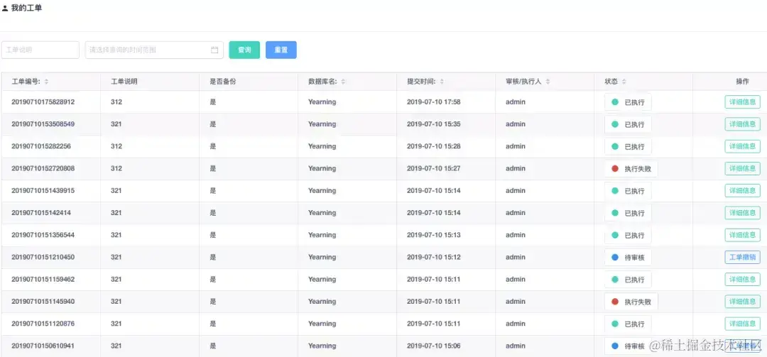 工单能够规范SQL脚本的执行流程,将执行的过程记录清楚,作为后面复盘和甩锅背锅的依据。