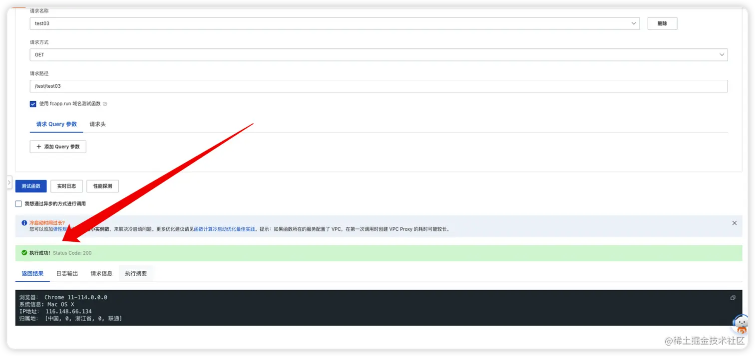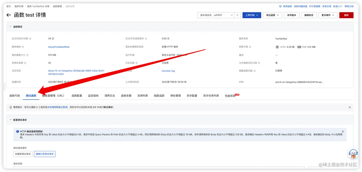 点击进入上面步骤创建的函数,可以看到公网地址。