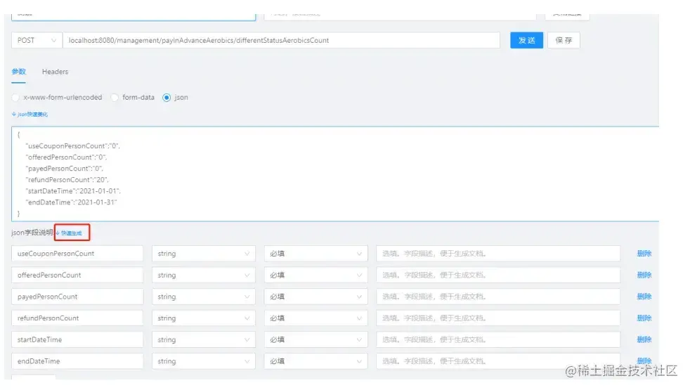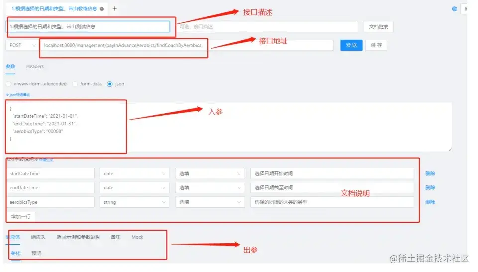 保存完成之后,它会根据你设置的入参还有出参,给你生成文档,