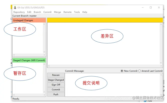 一般提交时候,我们直接点击remote->fetch from->分支,之后点击merge到本地的一个分支即可,然后直接五个按钮rescan点到push即可。(对于放在暂存区的文件点击文件的图标就可以让它返回到工作区)。