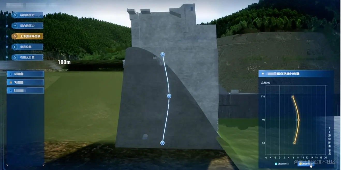 某数字孪生流域成果可视分析上下游水平位移