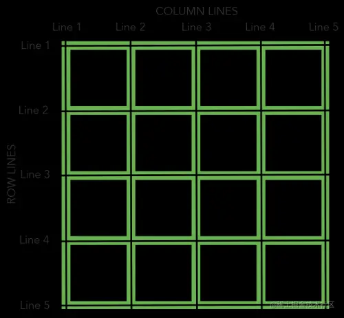 划分网格的线,称为"网格线"(grid line)。水平网格线划分出行,垂直网格线划分出列。 正常情况下,n行有n + 1根水平网格线,m列有m + 1根垂直网格线,比如三行就有四根水平网格线。