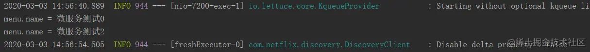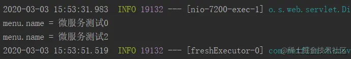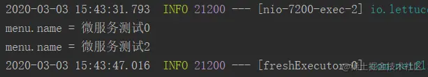 可以看到,“微服务测试2”由于已经有了缓存,所以没有再执行方法体。而“微服务测试0”又一次执行了。