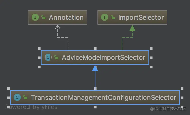 此注解是开启声明式事务的注解,那么它的@Import所导入的类为TransactionManagementConfigurationSelector,那么我们看一下其类图: