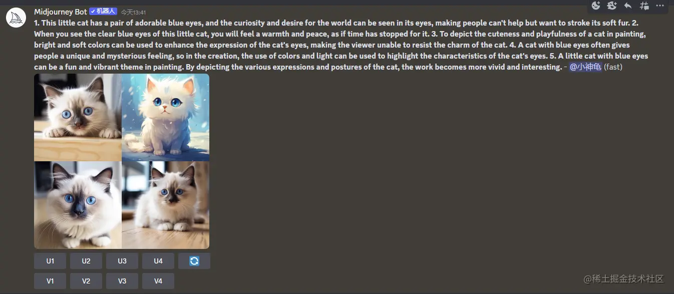 /imagine prompt : 使用Midjourney绘图功能,prompt后面输入我们需要绘画的内容(建议英文)