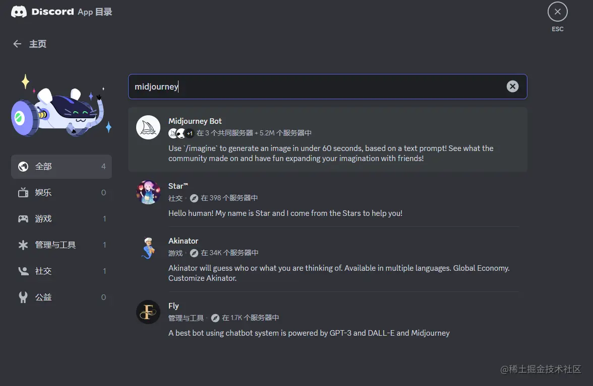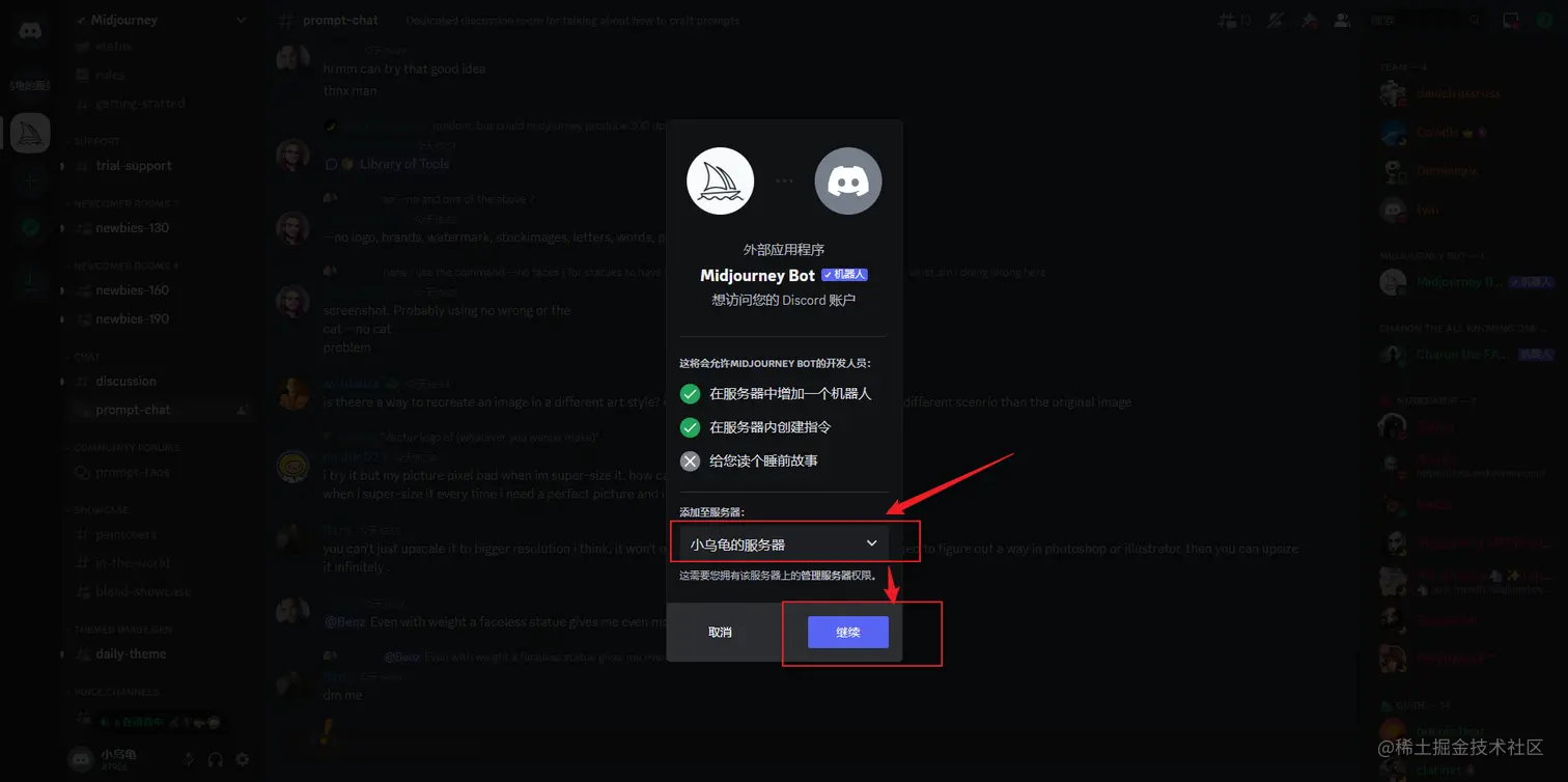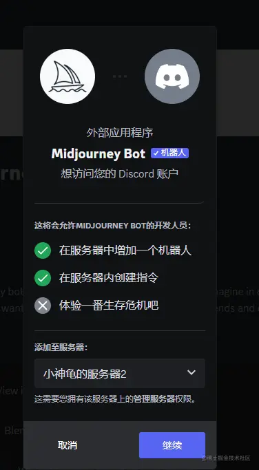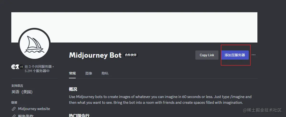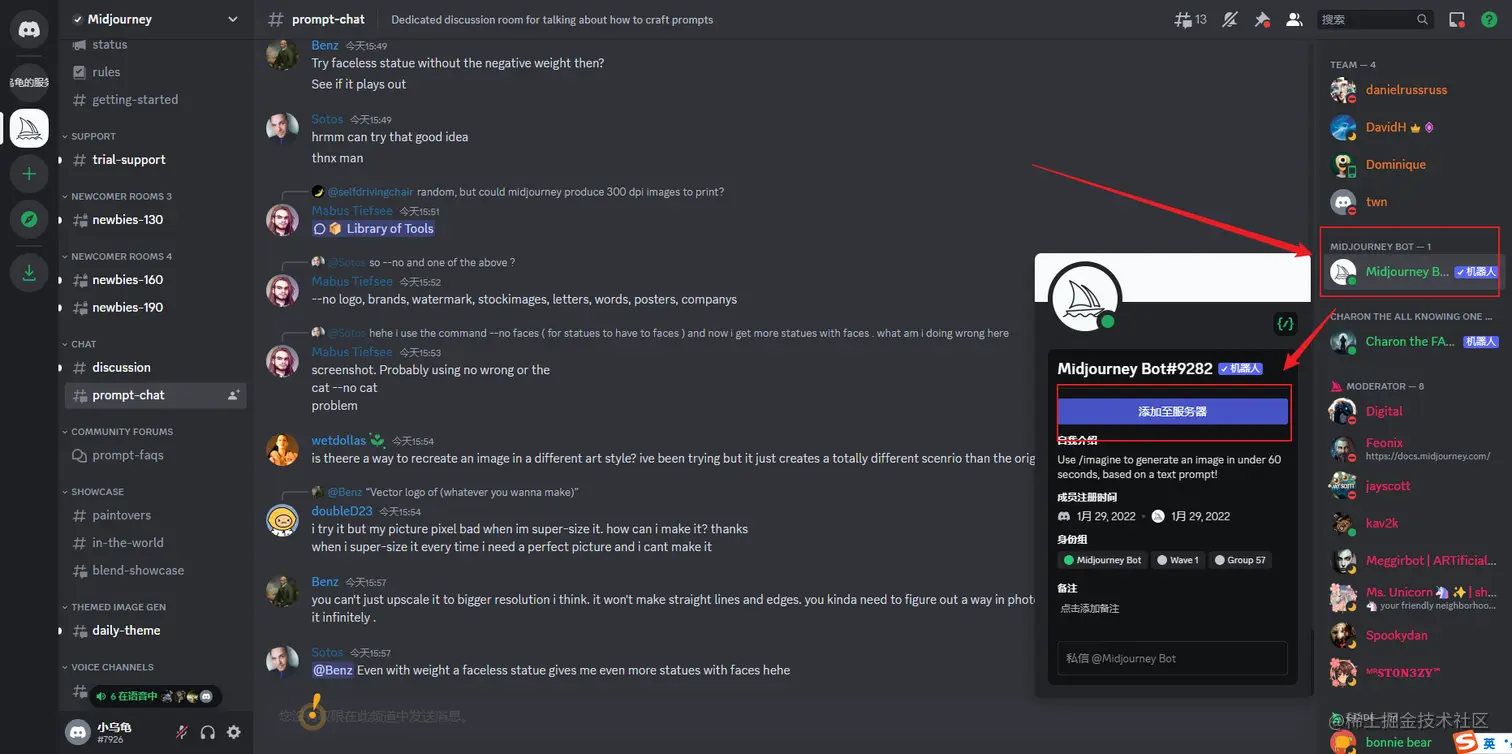 当我们服务器中有midjourney机器人的时候,表示服务器添加成功
