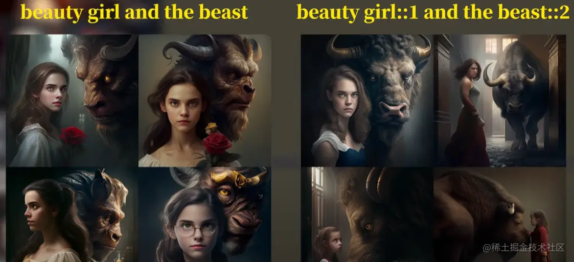 参数改变图像的生成方式。参数可以更改宽高比、模型、放大器等等。参数位于提示的末尾。