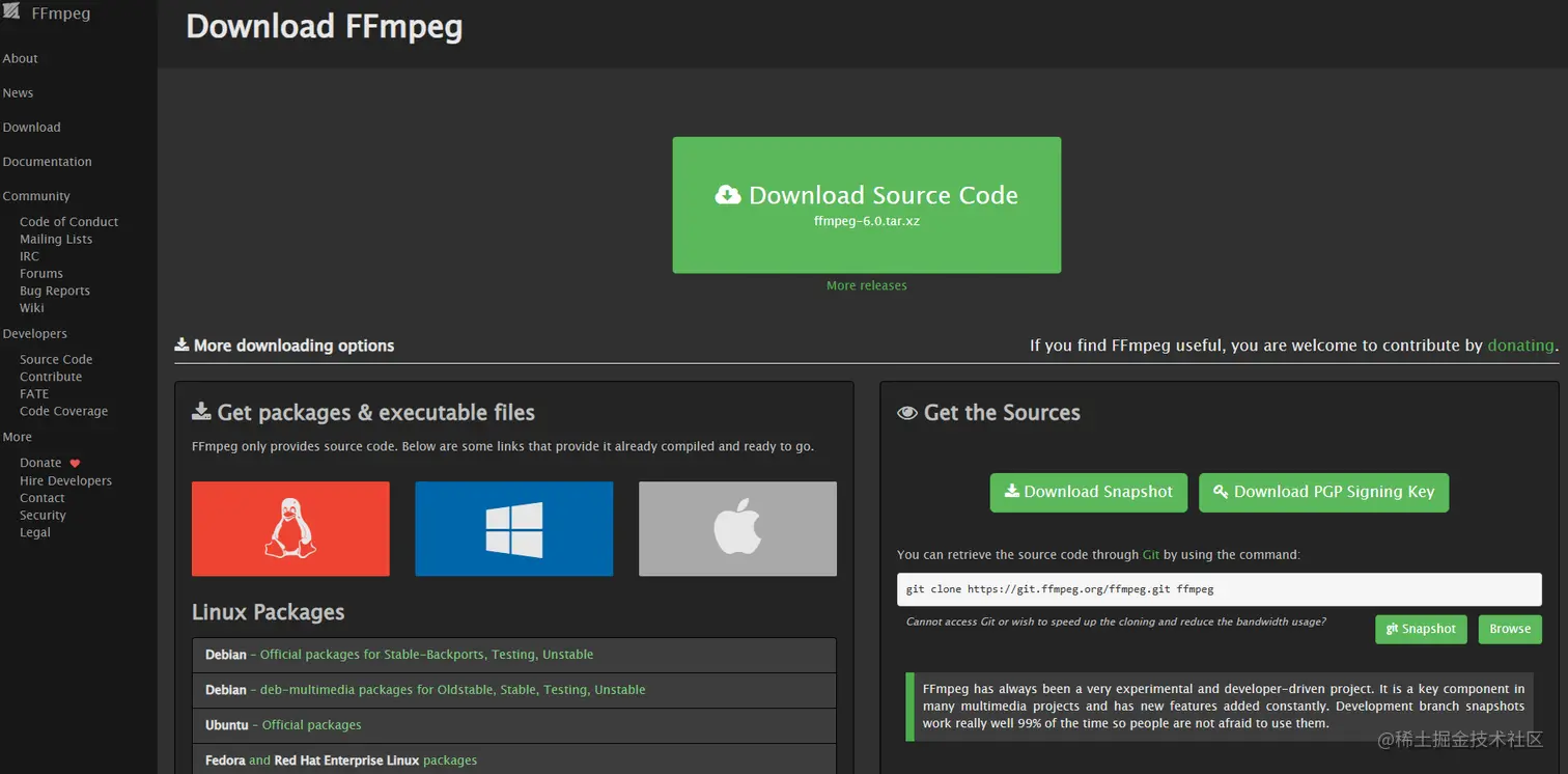 - 安装 ffmpeg。 打开ffmpeg官网:ffmpeg.org/download.ht…