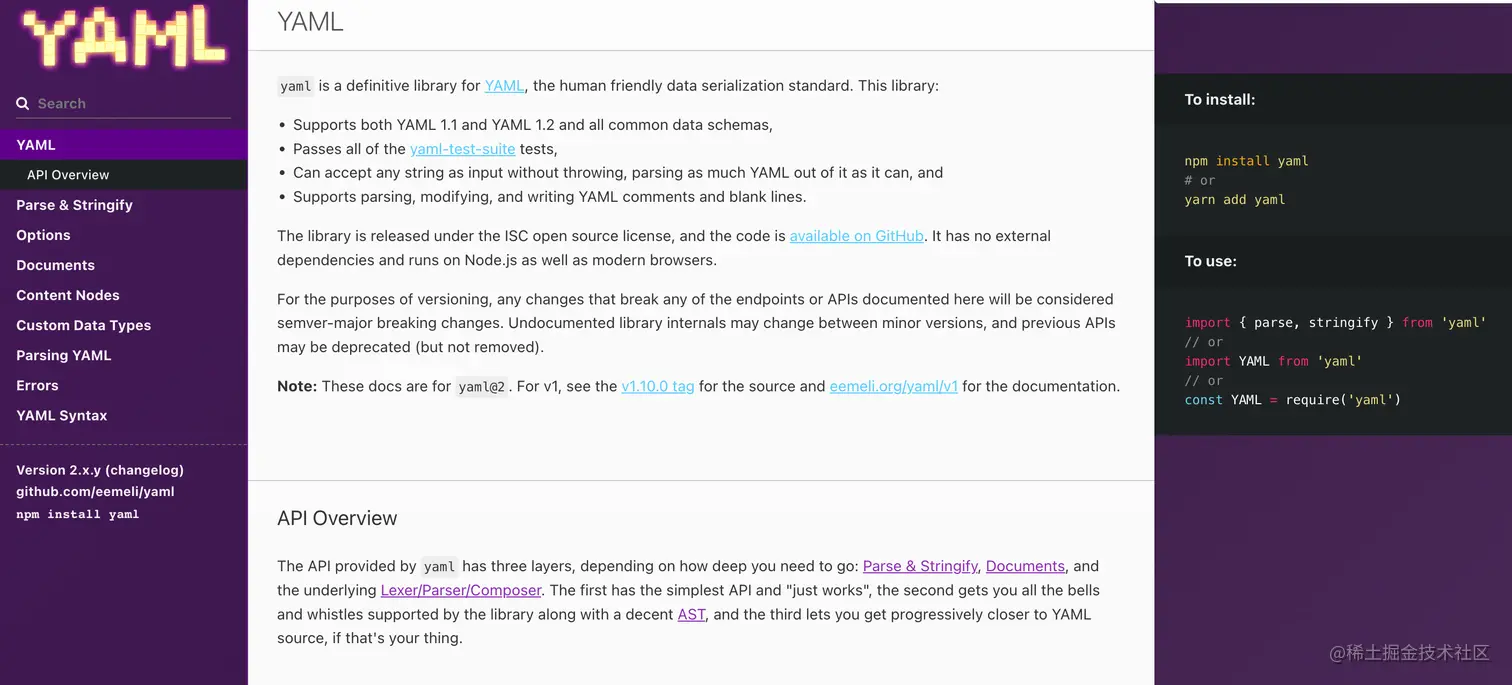 功夫不负有心人,我找到了这个 js 库 -> 官网: eemeli.org/yaml/#yaml(…