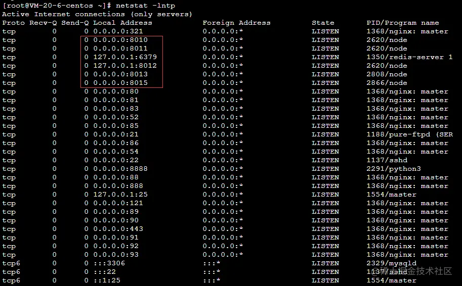 查看下监听端口: