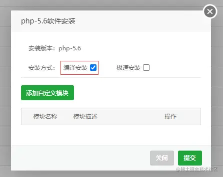 注意 PHP 5.6 是使用编译安装的方式。
