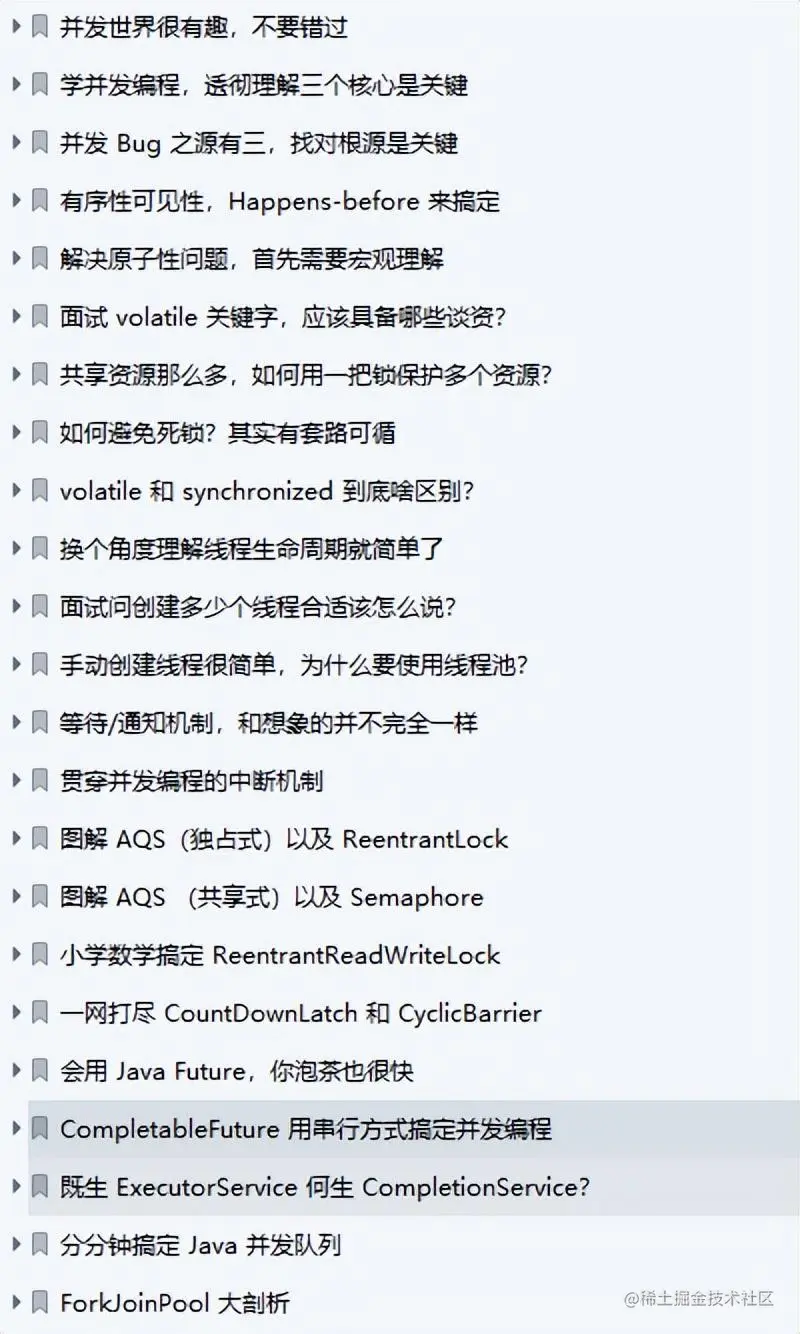 PS:并发编程还是所有Java初中级跨越至高开必须要迈过的一个槛。很多粉丝就经常跟我反馈,虽然意识到了并发编程对于Java程序员的重要性,平时也有投入时间学习,但要是按部就班的真正从零开始学的话又没那么多时间,所以一直以来就想找到一份权威的,涵盖并发编程所有的核心点的PDF总结,这样学习起来能大大的提高效率,也能加深自己对多线程的理解。这不,说什么来什么,为了满足广大粉丝们的需求,也感谢一直以来粉丝对我的无私支持,今天LZ就为大家带来了一份阿里巴巴2023最新并发编程全优笔记,如下所示: