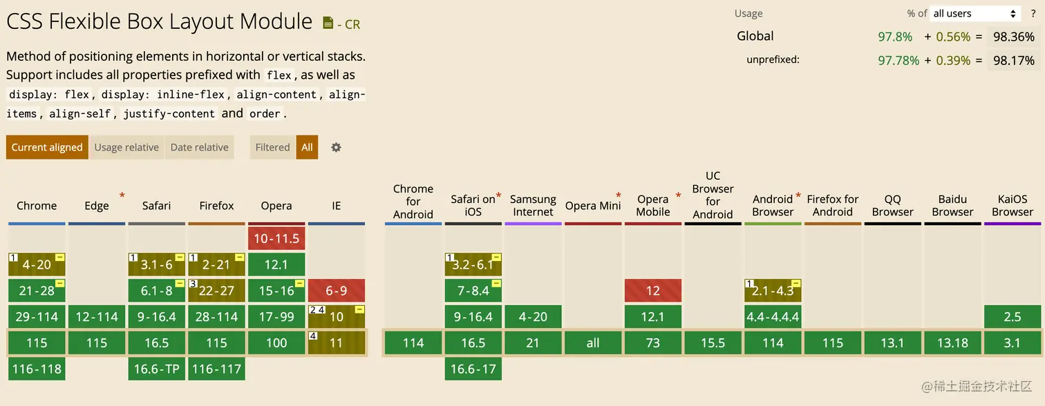 浏览器兼容性链接:caniuse.com/?search=fle…