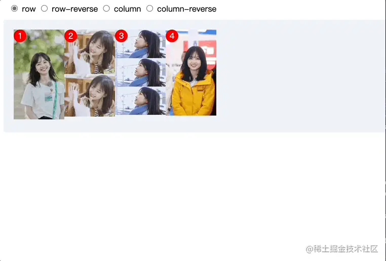 row-reverse:主轴为从右到左方向; -