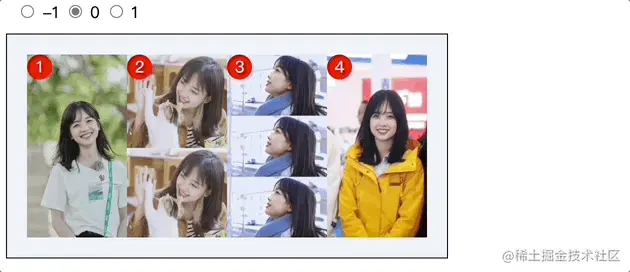 现在我们有四张冰冰的美图,将其中编号为3的图片元素order属性分别设置为-1,1。看其排序顺序变化。