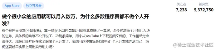 最近刚看到一个热搜,有个程序员朋友靠一款小众的iOS应用在北京赚了一套房,而且功能和代码量上都不是很复杂,可见自研产品也是一个不错的“发家道路”。
